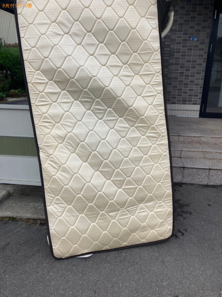 | 担当のコメント | シングルベッドマットレスの処理にお困りのお客様からご相談いただきました。見積り額がご予算内だったことがご依頼の決め手になったようです。片付け110番では、最短即日のお伺いが可能です。不用品にお困りの際はまたいつでもご相談ください。 |